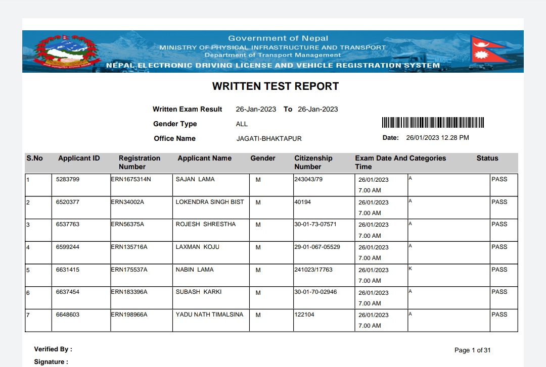 transport management office jagati Bhaktapur has published written exam result which was taken in today morning for more information you…