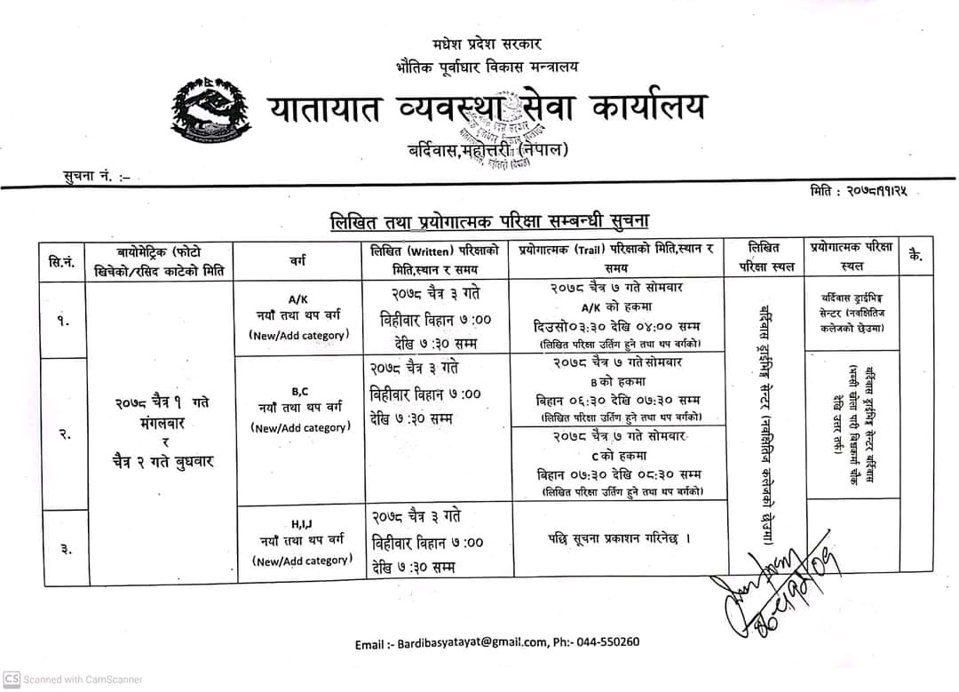 Transport management office bardibas has published notice regarding trial and written exam notice. This notice is applicable for those people…