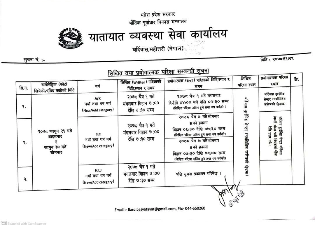 Transport office BARDIBAS HAS published notice regarding written exam schedule . This notice is applicable for those who have done…