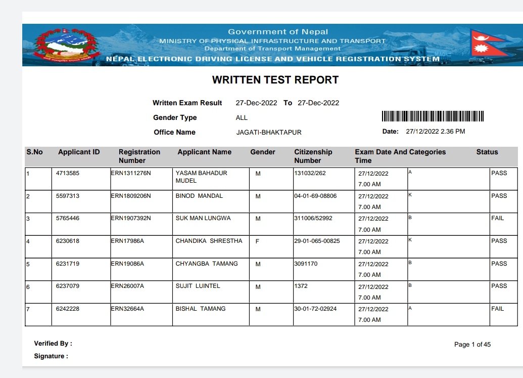 transport management office jagati Bhaktapur jagati radhe radhe has published written exam result which was taken in today morning for…