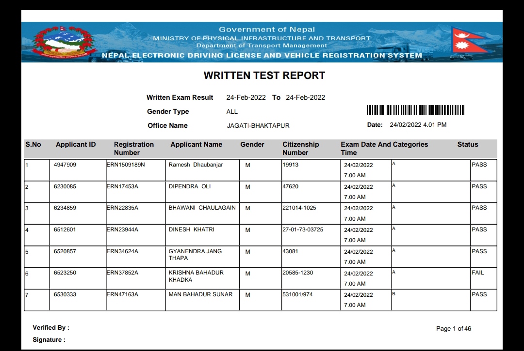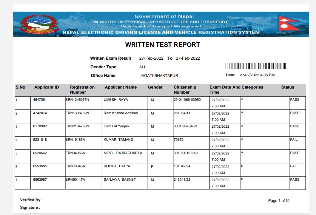 Written result out bhaktapur yatayat jagati
