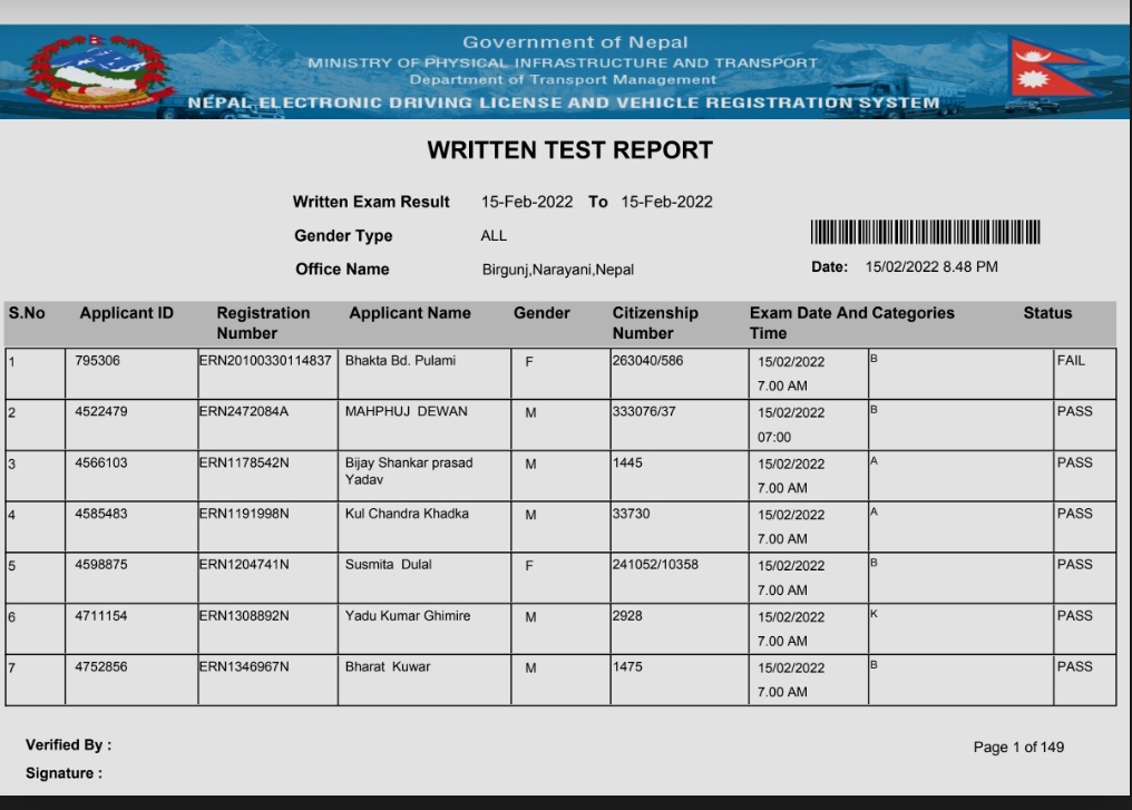 Birgunj yatayat published written exam result of category A B K which was conduct in 2078-11-03 . Now you can…