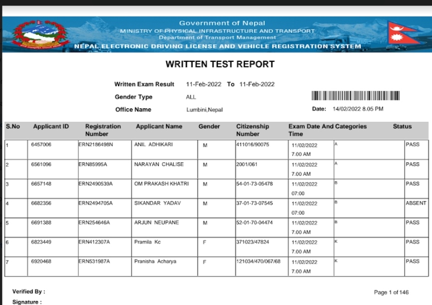 Lumbini yatayat published category A bike B car K scoter written exam result today. Which was conduct in 2078-10-27 and…
