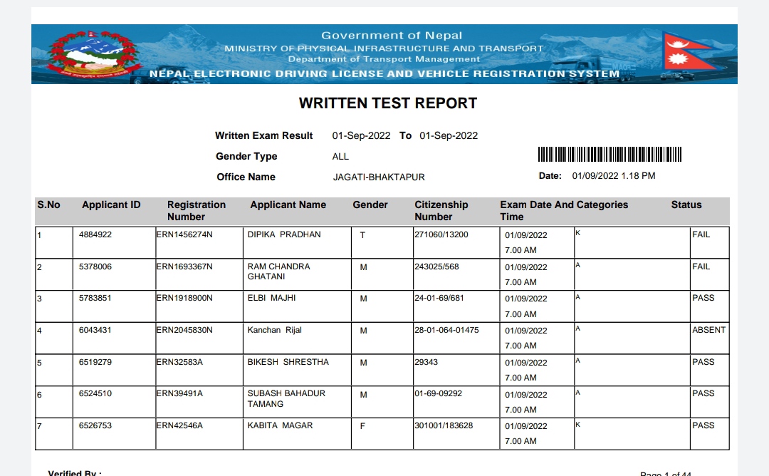 transport management office kathamndu jagati has published written exam result which was taken in today morning . source: jagati yatayat…