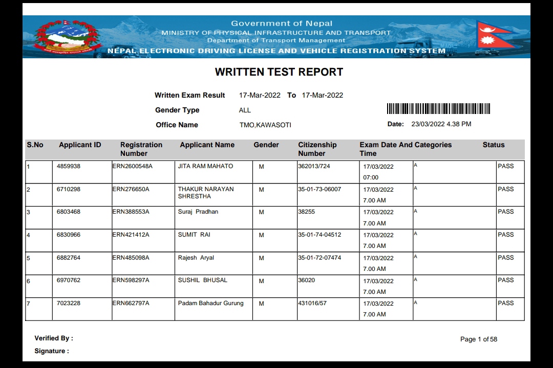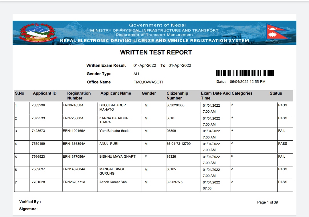 Written exam result out 2078-12-18 kawasoti yatayat