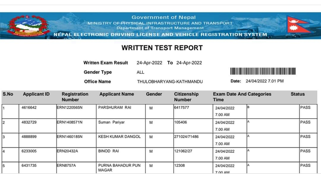 transport management office kathmandu thulobharyang has publishedwritten exam result which was taken in today morning . Now you can check…